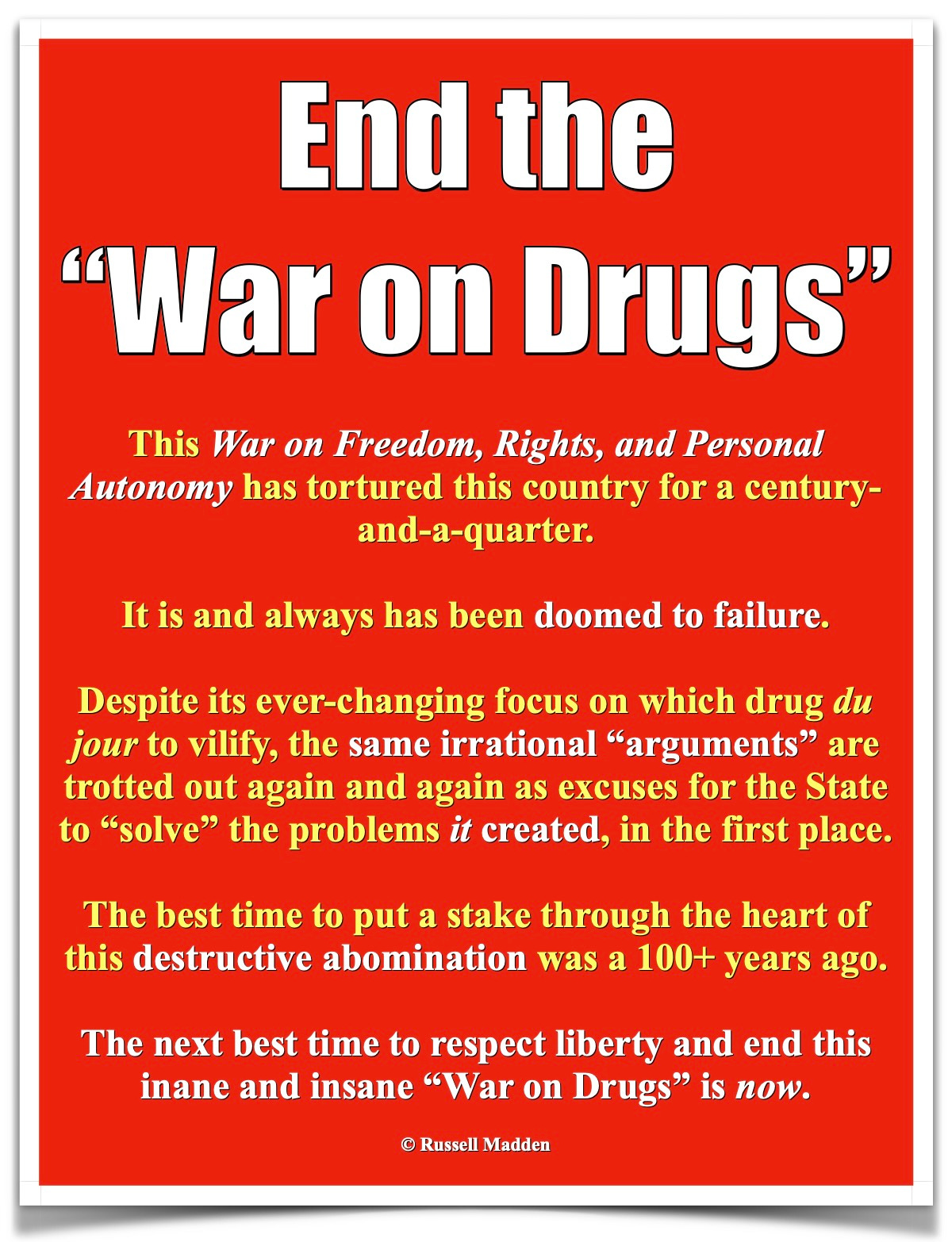 The unconstitutional “War on Drugs” violates our rights on every level as it ratchets up the power of the State to control us.
